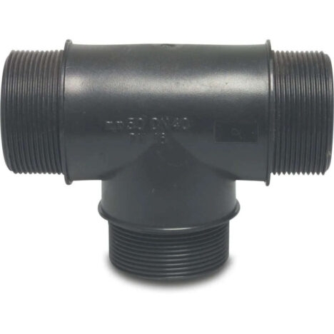 T-liitin, jossa on 1 tuuman ulkokierteet.