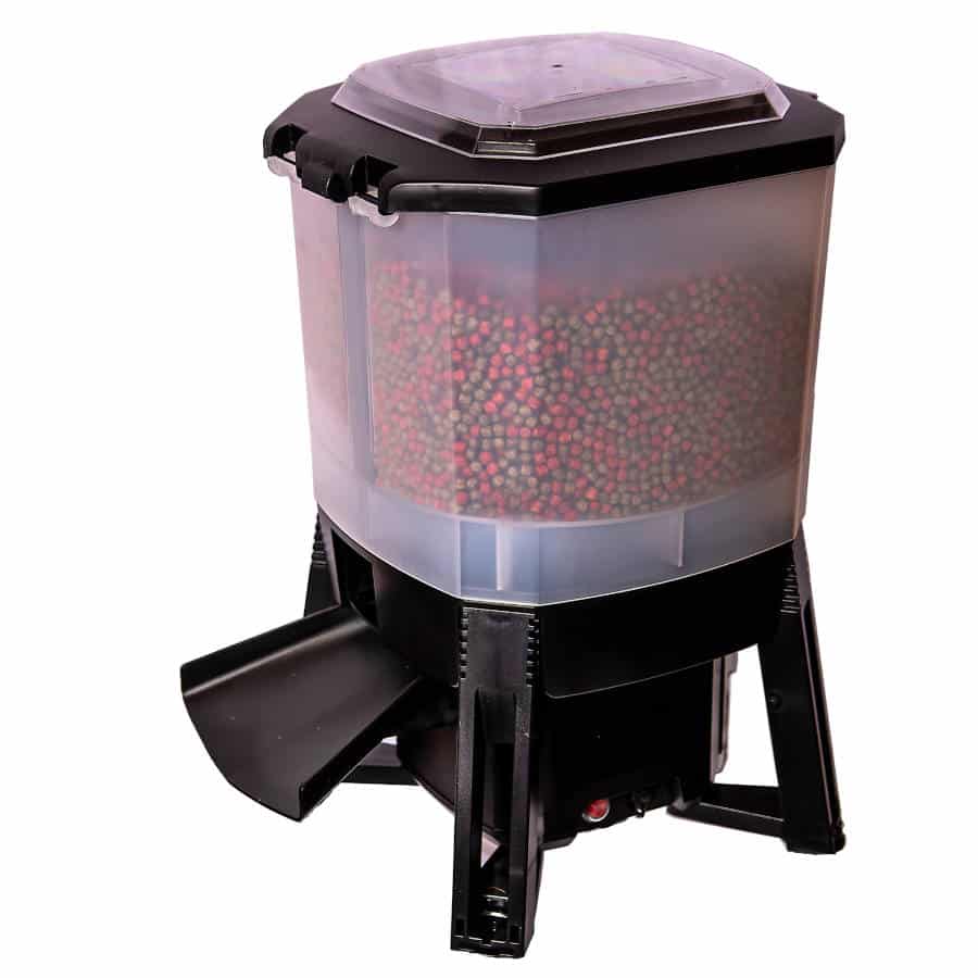 Med en foderautomat kan du se till att fiskarna får mat i lagom doser hela dygnet runt oavsett om du är hemma eller inte, bättre än att ge för mycket vid färre tillfällen för den som vill att fiskarna ska växa på sig. Även vattenkvaliteten i dammen brukar bli bättre då risken för att du matar för mycket minskar.