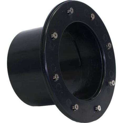 Flänsen sätts på ena sida folien och skruvas igenom in i de förborrade hålen på själva genomföringen.
